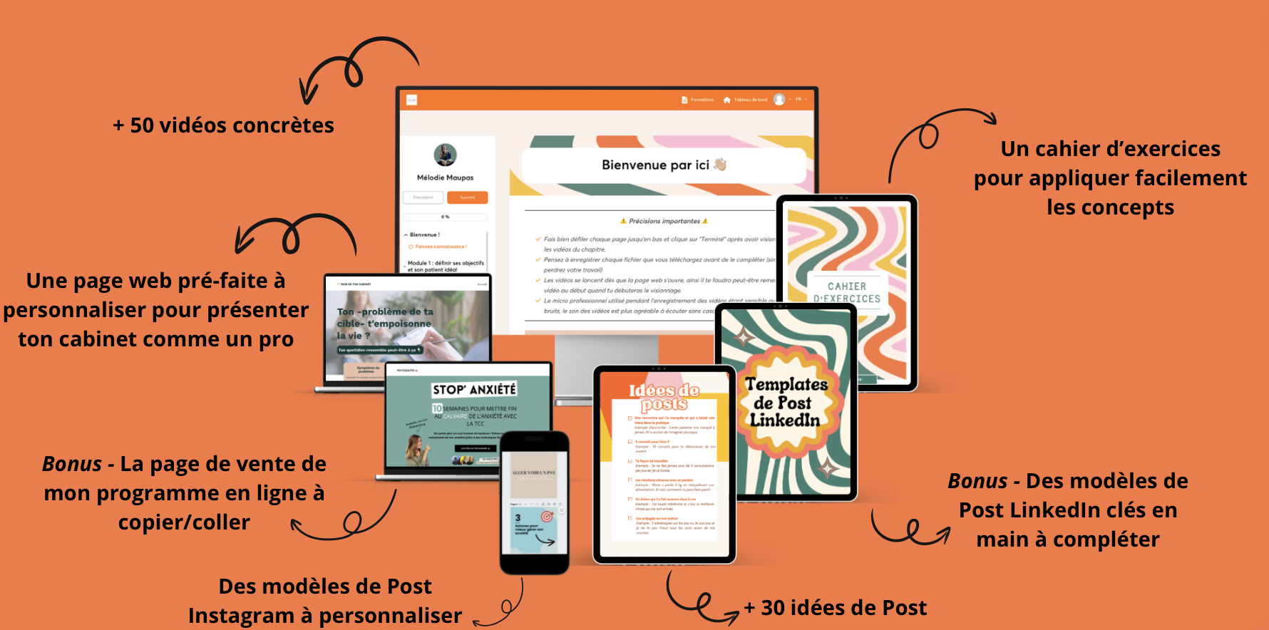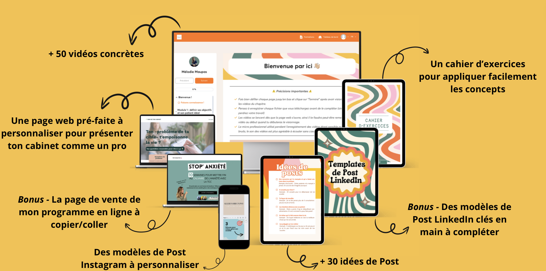 💥 De générer jusqu’à 1000€ par mois de complément de revenus en plus des consultations(grâce à la vente de mon programme en ligne)
