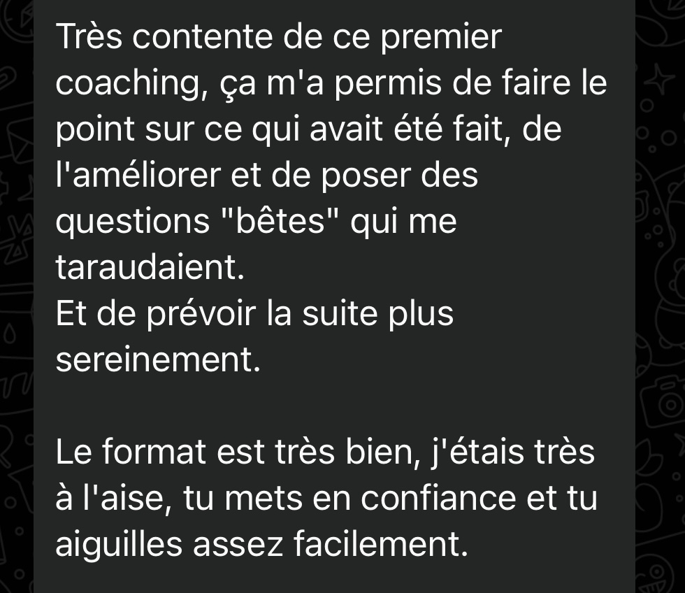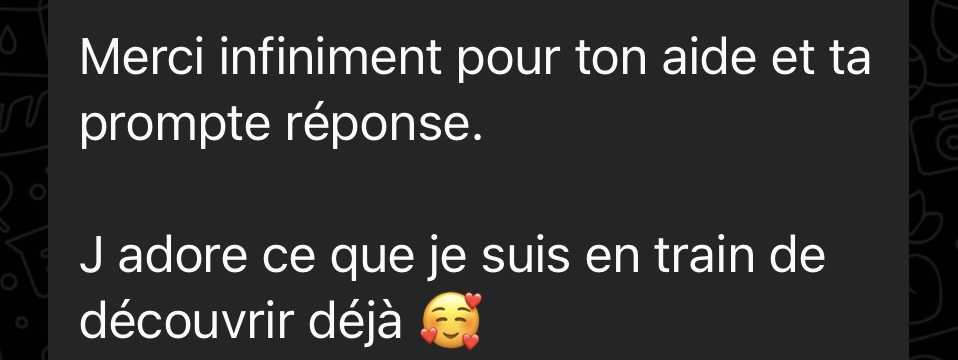 Un suivi individuel via WhatsApp 4J/7 pendant 3 mois pour poser tes questions en temps réel