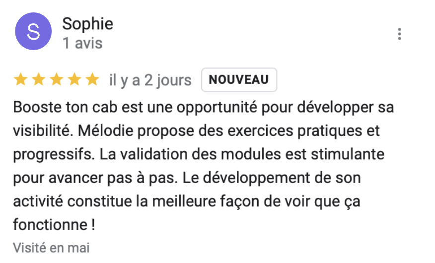 Les stratégies que je te transmets dans Booste Ton Cab’ m’ont permis :